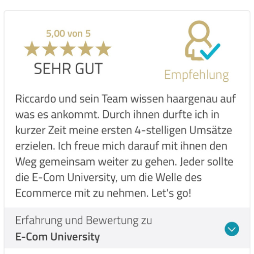 Phil ist im September bei uns in der E-Com University gestartet. Im Dezember konnte er einen Umsatz von über €160.000 generieren mit über 20 Prozent Gewinn. Und das mit erst 19 Jahren! Sieh dir das exklusive Interview mit ihm an und erfahre, was er von der E-Com University hält und welche Tipps er dir mit auf den Weg gibt!